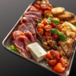 Verschieden eingelegtes Gemüse, Wurstvielfalt, Käsevielfalt, Bruschetta, Caprese und Pinsa Brot