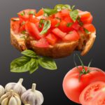 Geröstetes Brot mit frischen Tomatenwürfeln, Knoblauch und Basilikum