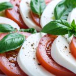 Tomaten und Mozzarella mit Olivenöl, Basilikum und Pinsa Brot