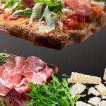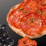 Tomatensoße, Mozzarella, Pistazien Pesto, Mortadella, Pistazien, Olivenöl